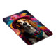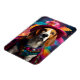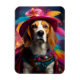 Um Beagle brincalhão vestido com uma fantasia vibrante e branca contra um pano de fundo brilhante e mágico. Essa design encantadora é perfeita para amantes de os animais.