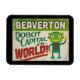 Um charmoso imã de geladeira de viagens vintage de Beaverton, Oregon, com um robô engraçado e amigável, junto com um texto divertido no estilo retrorreflector que diz, "Veja você em Beaverton"