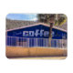 Beba o sono COFFEE mais tarde - Em letras brancas vestidas sobre um fundo azul cobalto pintado em uma parede de tijolos, o sinal na fotografia original de ZoeSPEAK neste Magnet diz tudo para amantes de café. O pequeno compro, com uma palmeira à frente e um telhado entalhado atrás, está caindo à luz do sol da tarde.