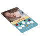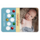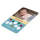Bebê natal, ideia de presente, ímã de fotos de geladeira. Projetado com bolas de neve, bolas de neve e cores azul, vermelha, verde e dourada Substitua a foto, adicione um nome e o ano.
