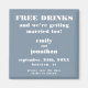 Palavras engraçadas para convidar seus hóspedes para salvar sua data de casamento, e uma boa manutenção também. Totalmente personalizável. A tipografia está em branco, com o cabeçalho, Bebidas Grátis E estamos nos casando também num pano de fundo de azul empoeirado. As cores do texto e do plano de fundo podem ser alteradas se você quiser se adequar melhor ao seu tema através da opção Personalizar Mais.