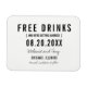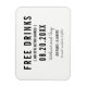 Casamento engraçado de "bebidas grátis" salve os ímãs de data em um bloco preto e branco moderno e design de roteiro que diz "Bebidas grátis (e vamos nos casar)". Personalize com seus nomes, local do casamento e data do casamento.