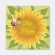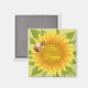 Este íman quadrado é exibido com uma impressão de girassol fofa Bee Happy Bee.