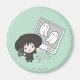 Um belo desenho animado de Chibi Lydia Deetz tirando fotos de fantasmas com sua câmera.