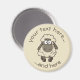 Cartoon de ovelha bege. Dois campos de texto em círculo.