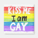 Este trabalho de arte apresenta um arco-íris colorido com a frase "Beije-me eu sou Gay".