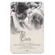Cartão de casamento no qual a imagem, a ocasião, os nomes, a localização e a data podem ser personalizados na modelo.