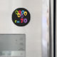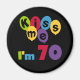 Fazer 70? Vocês vão amar o nosso Beijo-me. Sou 70 aniversariantes em camisas, canecas, cartões, adesivos, ímanes, chaveiros e outros equipamentos de 70 anos com um balão e design de texto brilhantes multicoloridos.
