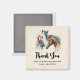 Obrigado de festa, seu ímã com um belo desenho de aquarela. Com um par de cavalos, castanho e branco. Cabeça e pescoço visíveis com tinta pingando na base do pescoço. Vírus sudoeste.