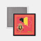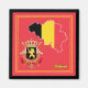 A bandeira nacional da Bélgica está inundada num mapa-esboço do país. O casaco de armas do país também está incluído e ambos estão em um fundo vermelho com quadros amarelos para completar o design.
