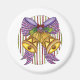 Ilustração Vintage design de Natal Feliz com sinos de ouro de desenho amarrados com uma fita grande em um belo arco e bagas ocas sobre um padrão de risca oval.