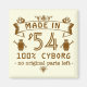 Este engraçado imã quadrado da novidade de aniversário da gag diz, "Feito em __ / 100% Cyborg / não restam peças originais." A única design sobre a colina é feita em todo marrom com uma combinação de florescimento retrô/safra, faixa e dois pequenos robôs. Mudar facilmente o ano para o ano em que o beneficiário foi nascer. Este é o presente de aniversário perfeito e humorístico para um geek ou nerd que gosta de robôs.