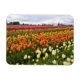 Bela vista de um campo de tulipas na Fazenda Tulipas de Wooden Shoe em Woodburn, Oregon. Lindas cores de branco, laranja, amarelo e pinks em filas de tulipas. Foto: abril de 2014.