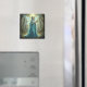 Uma bela fada vestindo um vestido cor de turquesa e um colar feito de pedras de turquesa com tartaruga e holly em seus longos cabelos de tartaruga e asas iridescentes como a libélula segurando um galho sagrado numa floresta mágica cercada de grama, rochas e árvores cobertas de cipós.