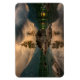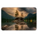 Um ímã flexível com uma bela fotografia. Uma noite com montanhas e um lago calmo. Algodão se acende à distância.