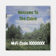 Bem-vindo a convidados da sua casa de aluguer com este ímã que inclui as suas informações WiFi. Este ímã apresenta uma foto mosaica da paisagem florestal de Tonto National Forest em Arizona. Um pequeno campo de pastagem com árvores altas chegando ao céu azul branco pontilhado por nuvens é capturado nesta fotografia da paisagem. "Bem-vindo à Cabina" e o código WiFi pode ser facilmente personalizado.
