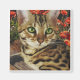 Bengal Kitten com olhos verdes colocados contra o pano de fundo de papoilas coloridas está disponível em ímãs, Totebags, roupa, cartões e presentes de Friskybizpets