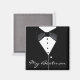 Um smoking na moda preto com uma gravata de bolha preta e uma camisa branca. É perfeito para o padrinho. Personalizar conforme desejado.