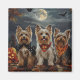 Libere o espírito assustador com esta design sombria do Dia das Bruxas apresentando um bando de cachorros sob um céu escuro e iluminado, cercado por morcegos voadores e abóboras brilhantes. Perfeito para aqueles que amam um toque de diversão terrível com seus amigos peludos!