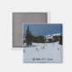Esquiadores e snowboarders aproveitando um dia na Grande montanha Branca. A neve cobriu as árvores e o fundo.