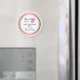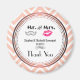 Um ímã de agradecimento com um design de casamento moderno - lábios rosados glamourosos e uma ilustração de bigode masculino com visual retrô. Situado em um fundo de chevron em pêssego com um círculo sobreposto. O círculo tem uma borda com gradiente em rosa dourado. O texto interno diz Sr. e Sra. e você pode personalizar com seus nomes e data de casamento.