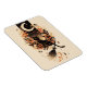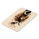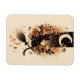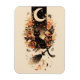 A charming Halloween illustration of a black cat sitting on a witch’s broom surrounded by flowers and a crescent moon. A retro magical Halloween vibe.