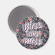 "Abençoe esta bagunça" cita o ímã da cozinha com bonito fundo floral vintage.