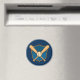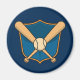 Ícone de beisebol com dois morcegos e uma bola sobre um escudo azul.