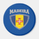 A bandeira nacional da Madeira é impregnada em forma de escudo e colocada abaixo do nome do país.