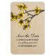 Blossomas de cereja doce e bonito Salvem o Magneto Flexi Premium com galhos encantadores de flores de cereja amarela em um fundo de papel texturizado falsa bege. Esta elegante imã salve a data floral japonesa é perfeita para anunciar um simples e chic primavera ou um casamento de verão. Fácil de personalizar, basta adicionar os detalhes do casamento nos campos de texto fornecidos. Clique em "Personalizar" para encontrar mais opções de personalização.