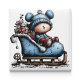 Blue Bear Santa Sled Christmas Magnet