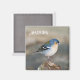 This magent features a Madeira chaffinch (Fringilla maderensis), an endemic and beloved bluebird of the Madeira Island. Captured in soft natural light, it highlights the bird’s gentle blue and warm tones. Perfect as a travel souvenir and gift for bird enthusiasts.