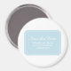 Imã salve a data de Casamento Moderno e Chic Simplesmente Elegante com um elegante bilhete azul emblema design. Este design clássico e na moda é fácil de personalizar com seus detalhes de casamento. Para obter mais opções de personalização, clique em Personalizar.
