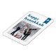 Feliz Hanukkah! | Envie seus desejos de feriado com este ímã de fotos do Chanucá personalizável. Apresenta tipografia azul retrógrada e acentos de flocos de neve. Personalize adicionando nomes, ano e foto. Esta foto festiva do ímã Happy Hanukkah está disponível em várias cores e estoque de papelão.