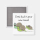 Um ímã de "boa sorte" com uma imagem engraçada de uma família de caracóis.