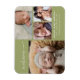 Anuncie a chegada do seu bebê recém-nascido com este moderno ímã de anúncio de nascimento verde. Frente apresenta uma colagem de quatro fotos de suas fotos favoritas de bebês com boas-vindas em uma tipografia de script. Personalize com o nome do seu bebê, data de nascimento, estatísticas de nascimento e nomes dos pais.