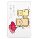 Íman branco de fundo com desenho animado de ouriço giro casal de mãos dadas e segurando balões em forma de coração com o texto "recem casados". Modelo personalizável para mudar para os nomes do noivo e noiva e a data do casamento. Adequado como um favor festa de casamento.