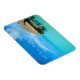 Fotografia retangular de souvenir com um bangalô sobre-água na lua de mel em um resort de luxo na clara lagoa azul da ilha pacífica de Bora Bora, perto do Taiti, no arquipélago francês da Polinésia, com o texto "Bora Bora, Polinésia Francesa".