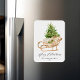 Um ímã simples e elegante, de férias, com um trenó de aquarela, cheio de uma árvore de Natal e presentes. "Feliz Natal" é mostrado abaixo em um belo roteiro caligráfico. Personalize o ímã de férias chic adicionando seu nome e o ano.