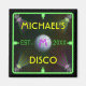 Crie sua imã de geladeira quadrada personalizada do bar da casa de disco de 1970 usando este modelo. O imã tem uma borda verde de neon com quatro luzes brilhantes sobre uma bola de espelhamento de disco bobo / bola de brilho. O fundo preto tem um arco-íris fraco de quadrados coloridos. Este ímã funky pode ser personalizado com o seu primeiro ou sobrenome, monograma, e no ano em que o seu bar ou a sua caverna de homens de 70 ou anos 80 foi estabelecida. Basta preencher o modelo de DIY fácil ou "Personalizar" se quiser redimensionar, reorganizar ou alterar as cores e fontes do texto. Este imã é perfeito para a tua decoração com o tema da discoteca retrorreflectora.