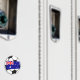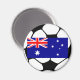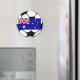 A majestosa bandeira nacional australiana cobria parcialmente uma bola de futebol.