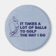 "É preciso muitas bolas para jogar golfe como eu faço!" Um golfista vintage balançando decorando o engraçado ditado de golfe. Comprar como presente para seu marido, sua esposa, sua avó ou avô, sua irmã ou irmão, seu chefe, seu amigo de golfe - perfeito para aniversários, dias de os pais, dias de as mães, aniversários, natal ou qualquer outro presente que dê uma oportunidade!