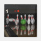 Um ímã com foto de pinos de boliche.