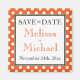Imã salve a data na moda para anunciar seu casamento, projetada com bolinhas brancas sobre laranja. Sem ordem mínima!