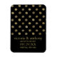 Estas imã salve o dia são perfeitas para qualquer casal planejando uma festa de casamento de chic. O design apresenta um fundo de bolinhas na moda em preto e ouro com uma redação de ouro editável correspondente. O design simples pode ser personalizado para se adequar ao seu evento especial e será o anúncio perfeito para qualquer partido moderno, incluindo chás de panela, noivados, chás de casamento, festas de aniversário e muito, muito mais.