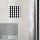 Bolinhas negras negras escuras em fundo branco. O padrão geométrico foi criado do zero. Imagem criada digitalmente. Copyright © 2013 Claire E. Skinner. Todos os direitos reservados.