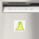 Um bonito bolo em amarelo-limão com bolinhas brancas e uma fita verde longa.