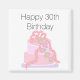 Um bonito bolo cor-de-rosa com fitas e detalhes florais, uma saudação feliz de aniversário...
