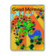 Pássaro azul brilhante com uma cauda inflamada sobre fundo solar. Você pode mudar o texto que diz "Bom dia", se quiser.