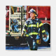 Está procurando um presente para um bombeiro? Esta design de um bombeiro ao lado do seu caminhão de bombeiros seria uma escolha perfeita e faria um presente de excelente.